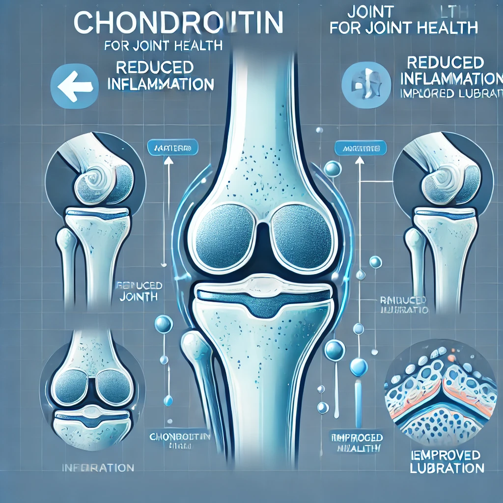 콘드로이친은 연골의 구성 요소 중 하나로, 관절 내부에서 수분을 유지하고 충격을 흡수하는 역할을 합니다. 또한, 연골이 손상되지 않도록 보호하며, 관절염을 예방하는 데 도움을 줄 수 있습니다. 콘드로이친을 꾸준히 섭취하면 관절 건강을 개선하고 통증을 줄이는 효과를 기대할 수 있습니다.